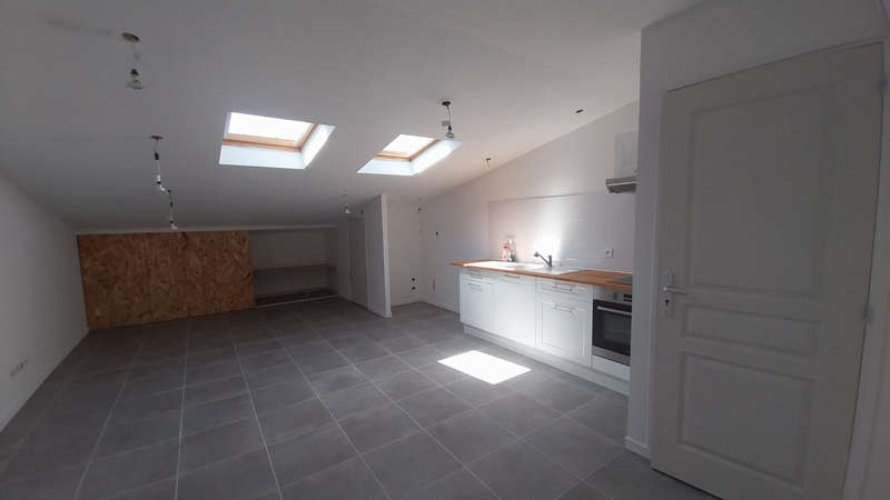 Appartement 2 pièces refait à neuf comprenant : Entrée sur pièce principale avec une cuisine aménagée et équipée (Plaque, four), une chambre avec bain et un wc. Une terrasse et une place de stationnement.
