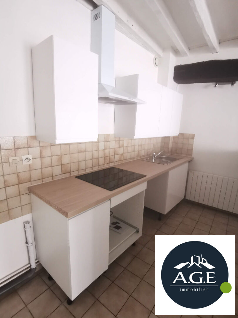 Dans rue calme, duplex comprenant une entrée sur séjour avec coin cuisine aménagée et équipée (plaques et hotte), à l'étage : palier distribuant une chambre,